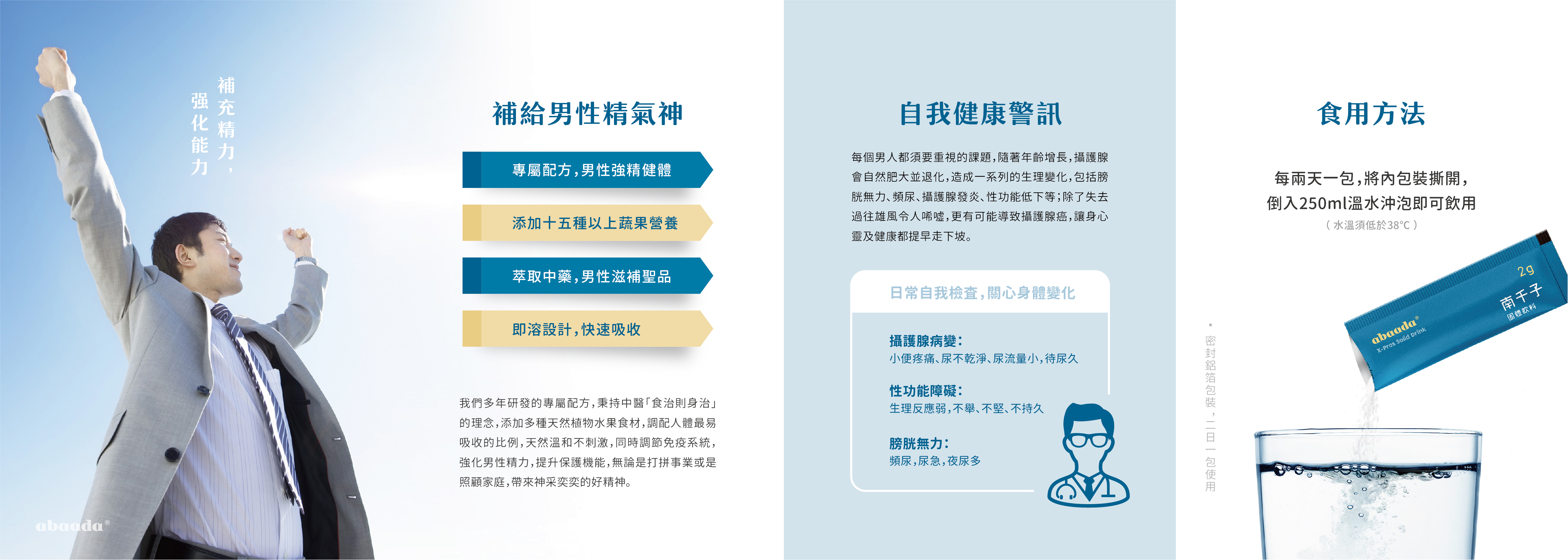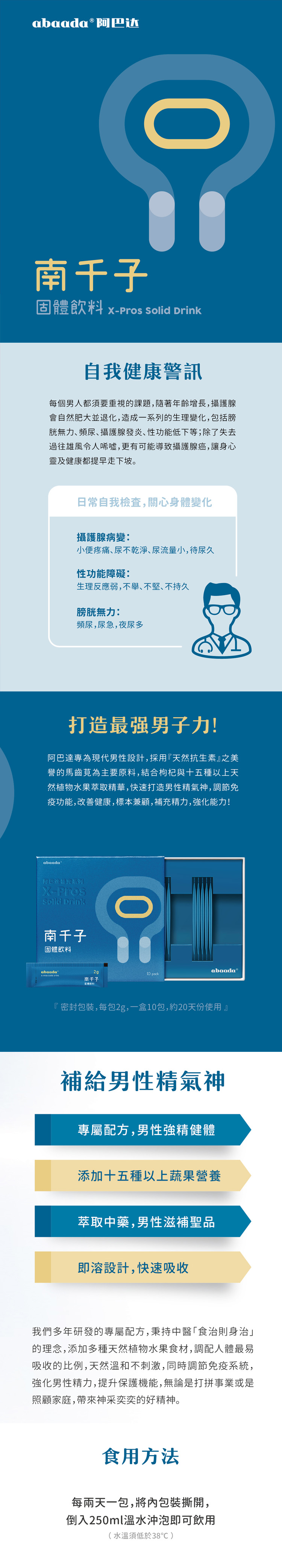 阿巴達(dá)専為現(xiàn)代男性設(shè)計(jì),採(cǎi)用『天然抗生素』之美?的馬齒莧為主要原料,結(jié)合枸杞與十五種以上天然植物水果萃取精華,快速打造男性精氣神,調(diào)節(jié)免疫功能,改善健康,標(biāo)本兼顧,補(bǔ)充精力,強(qiáng)化能力